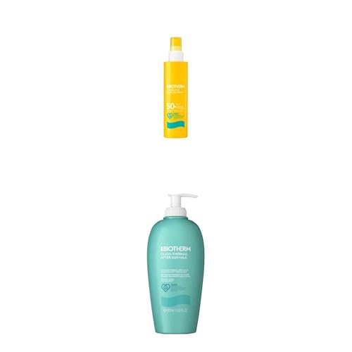 Lot de Biotherm, Waterlover Protection Solaire Lacté Hydratant SPF 50+, Spray Contre Rayons UVB, Résiste à l'Eau et au Sable, 200 ml + Lait Après-Soleil Oligo-Thermal, 400 ml