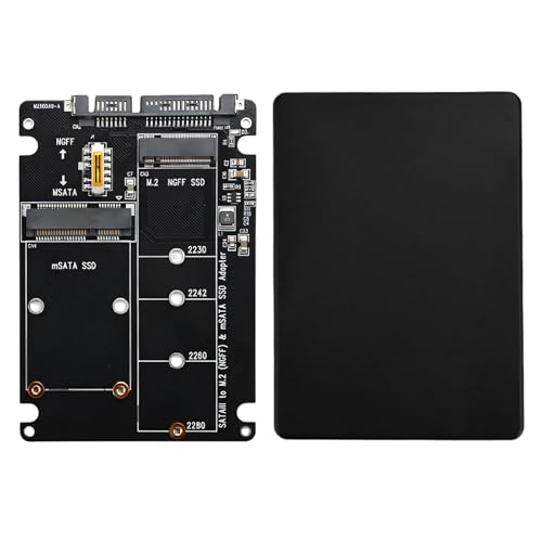 BosuLai Adaptateur Boîtier SSD M.2 NGFF B-Key, Compatible MSATA/M.2 NGFF, pour Clé B/B&M, SATA Combo Boîtier, Noir, Métal, SATA III, 4 To, ne convient pas aux SSD NVME/PCIE (M Key)