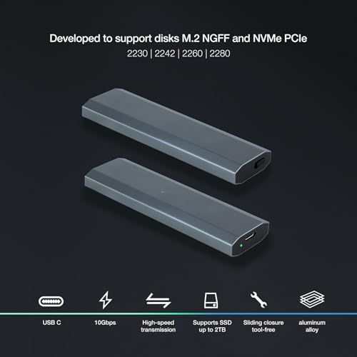 Zoravson Adaptateur de boîtier SSD M.2 NVME Double, USB 3.1 Gen 2 10Gbps, Adaptateurs et boîtiers pour Disque Dur Externe en Aluminium pour 2230 2242 2260 2280 pour système Win/OSX/Linux