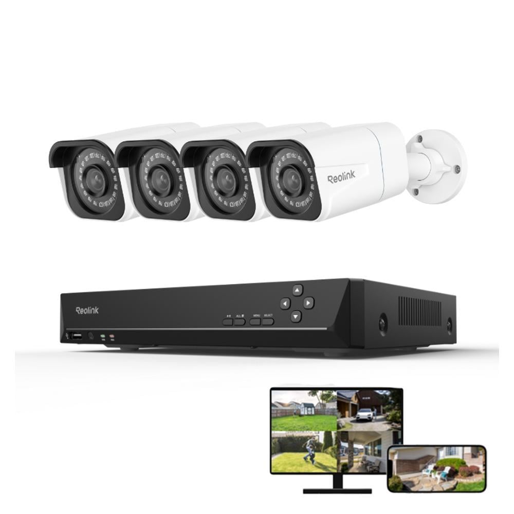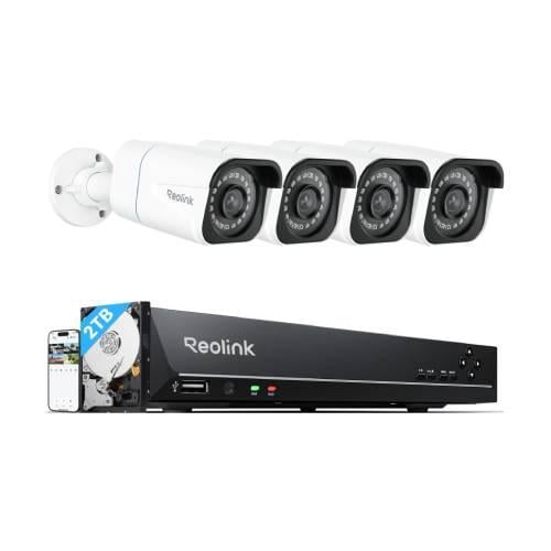 Reolink 4K Kit Caméra Surveillance avec 8CH NVR 2To intégré 4Pcs Caméra IP PoE avec Détection Vision Nocturne 30M RLK8-820D4-A
