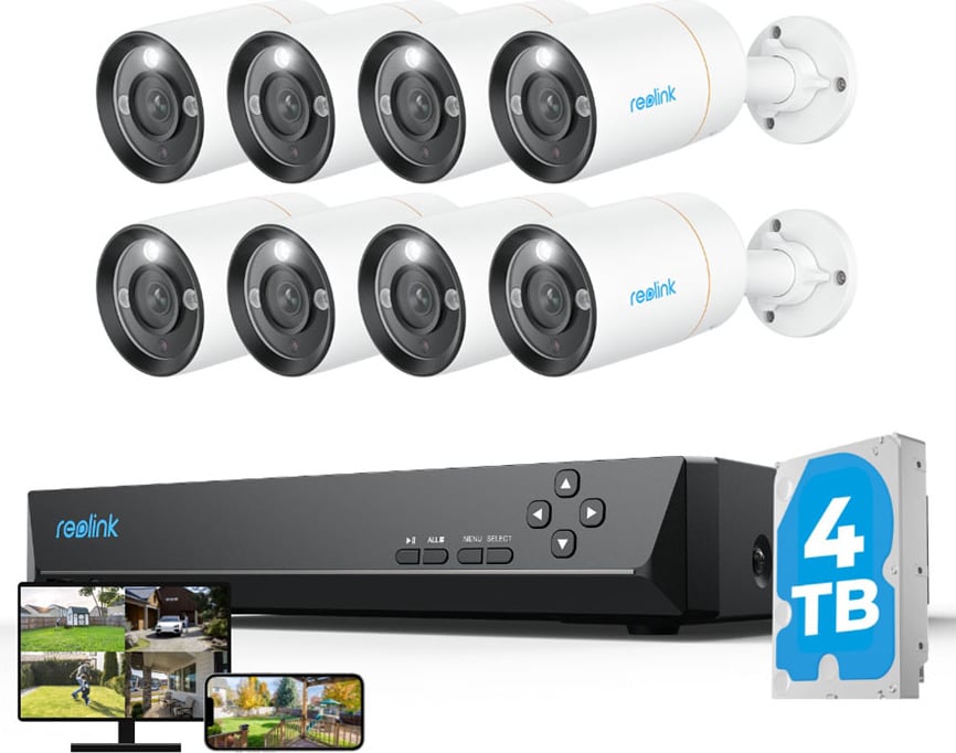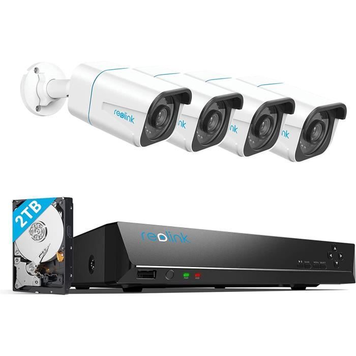 Reolink Set caméra de surveillance 4K extérieur, détection de personnes et de véhicules, 4X 8MP PoE caméra IP et 2TB HDD 8CH NVR pour enregistrement 24/7