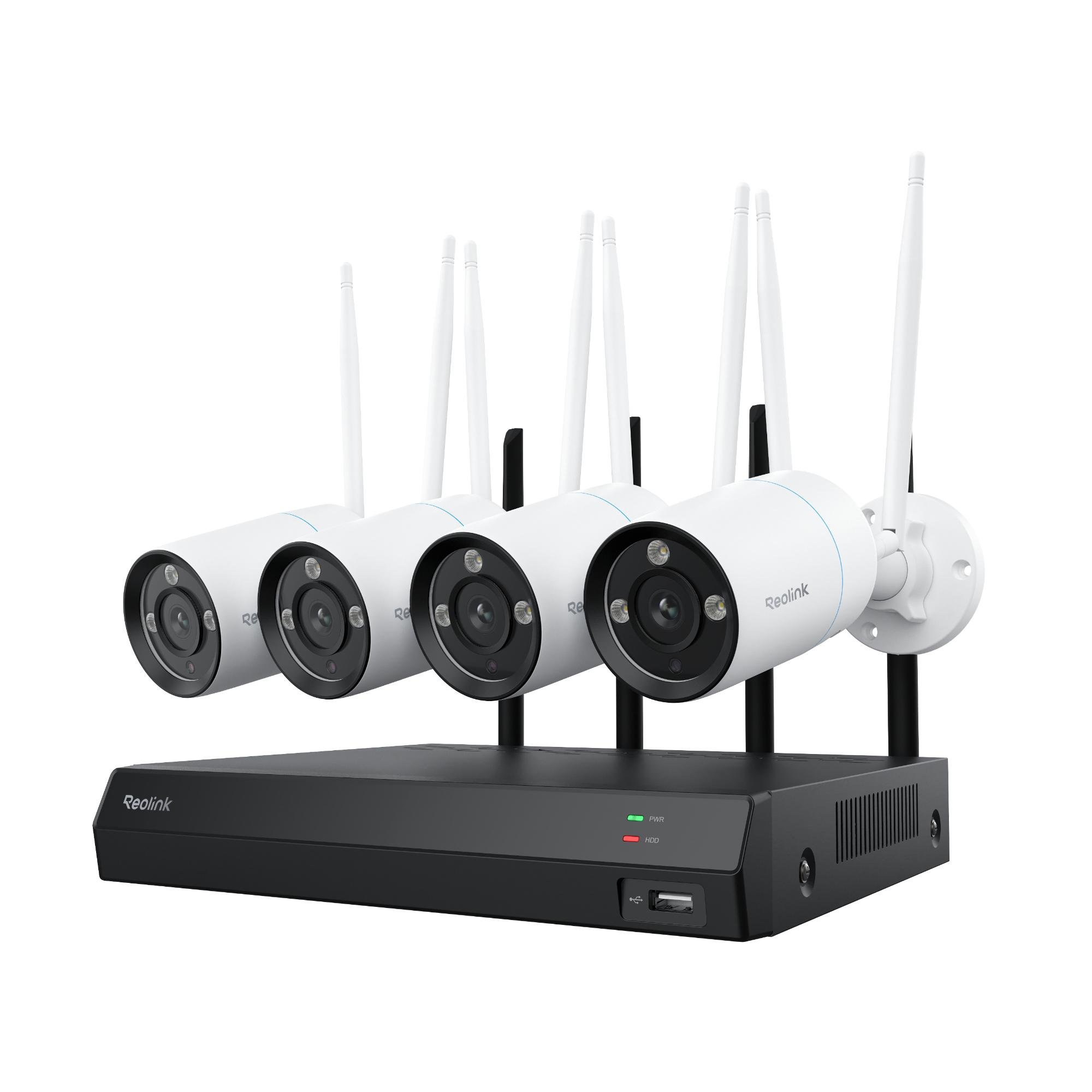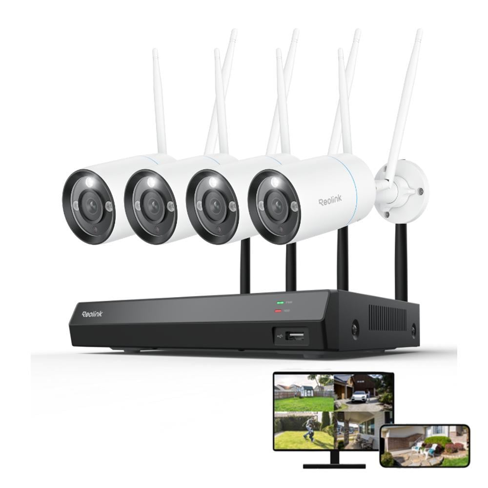 Reolink 8MP WLAN Système de surveillance extérieur, 4X 4K 8MP WiFi 6 caméra de surveillance & 12CH 2TB WiFi NVR, détection de personnes/véhicules/animaux