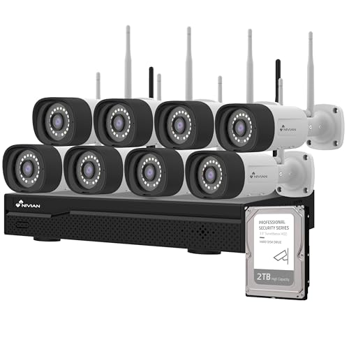 NIVIAN, Kit Caméras de Surveillance WiFi 2K Professionnel avec 8 Caméras IP, NVR 16 Canaux, Images Super HD, Détection Humaine IA, Vision Nocturne, Audio, HDMI, App EseeCloud, Enregistrement 24/7