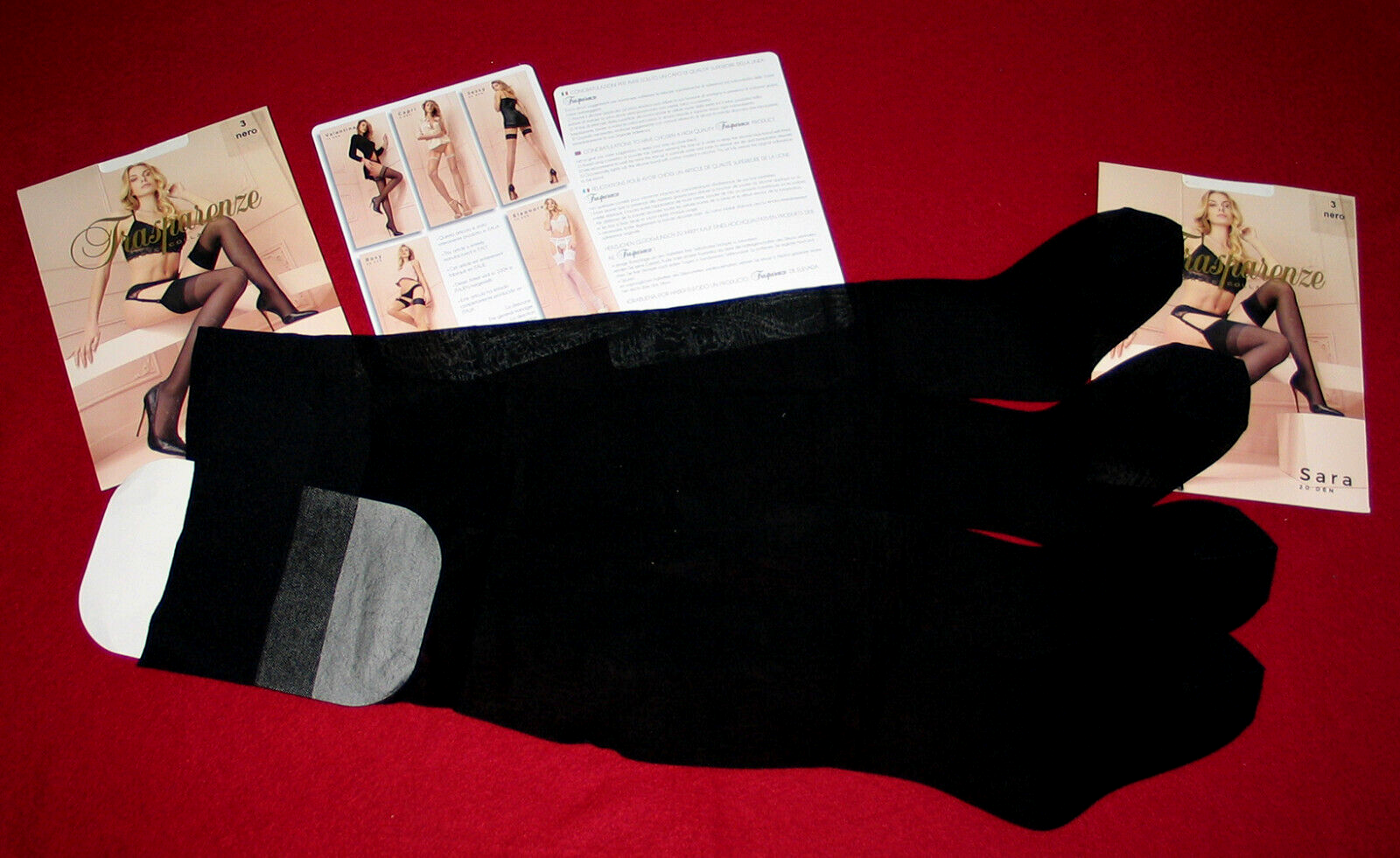 2 PAIRES BAS PJ TRASPARENZE SARA 20D T 3 NOIR NYLON LYCRA SEXY LINGERIE GLAMOUR