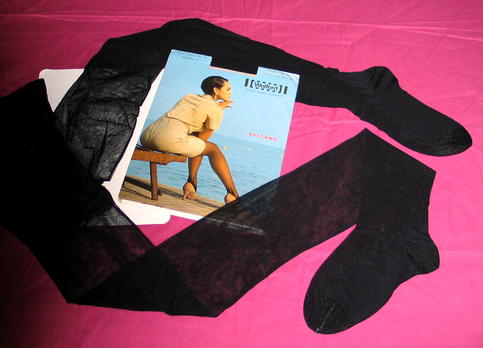 COLLANT COUTURE WOLFORD VULCANO T 1 NOIR NYLON LYCRA SEXY LINGERIE MOTIF FLAMME