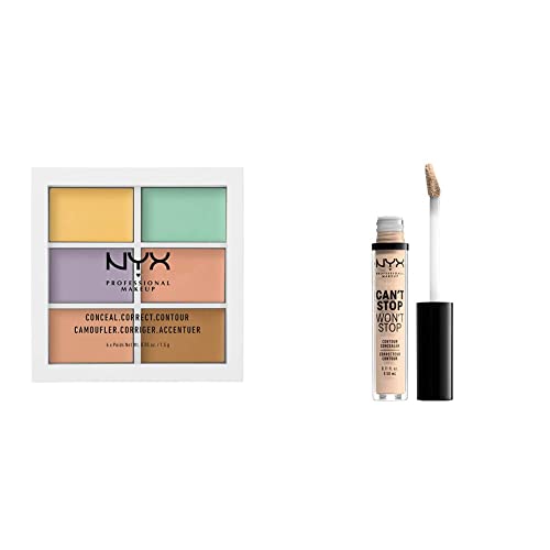 NYX Professional Makeup Palette Couleur et Correction, 6 Teintes Faciles à Estomper & Anticernes/Correcteur - Can't Stop Won't Stop Contour Concealer - Light Ivory