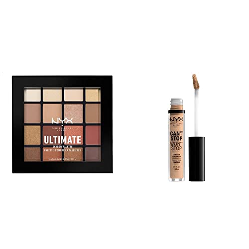 NYX Professional Makeup Palettes de Fards à Paupières Ultimate Shadow Palette, 16 Couleurs, Pigments Pressés, Fini Irisé & Anticernes/Correcteur - Can't Stop Won't Stop Contour Concealer - Natural