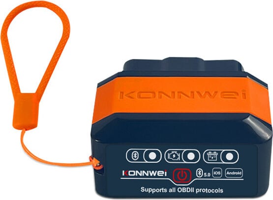 (Orange)KONNWEI Appareil de diagnostic OBD2 pour voiture - Scanner OBD sans fil Bluetooth 5.2, lecteur de code d'erreur pour iOS, Android et Windows - Système OBDII complet, outil de diagnostic de véhicule