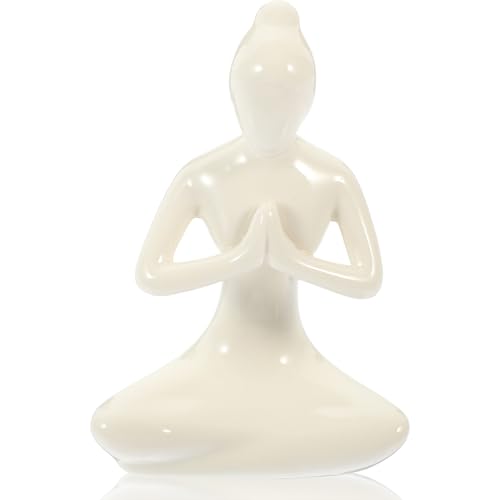 FRCOLOR Sculpture de Yoga en Céramique Abstraite, Figurine Fille Décorative Blanche pour Décoration Intérieure, Ornement Délicat pour Salon, Bureau et Chambre, Objet D’Art Élégant