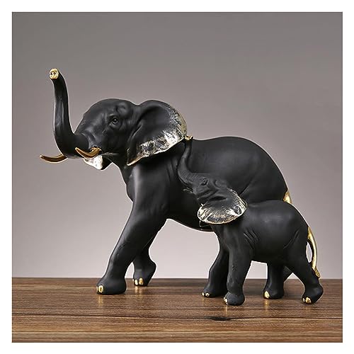 Tauzveok Elephant Statue, Éléphant Objet Decoration Moderne, pour Salon, Chambre À Coucher, Salle À Manger, Bureau, Décoration De Table Sculpture, Resine,Black Small