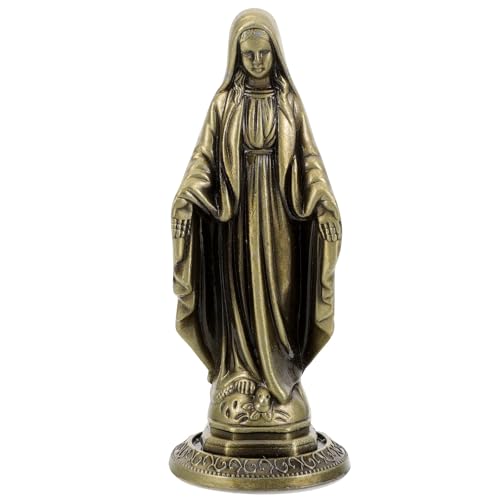 FUOYLOO Statue Vintage Vierge en Alliage de Zinc, Décoration Religieuse Catholique pour Bureau, Ornement Miniature Stable et Réaliste, Objet Religieux pour Salon et Chambre