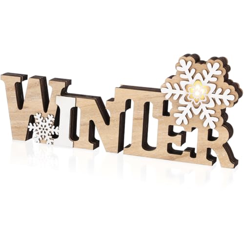 BESPORTBLE Lettrage de Noël en bois - Éclairage d'hiver - Flocon de neige - Décoration de table - Objet de veilleuse - Décoration de Noël pour chambre d'enfant - de fête