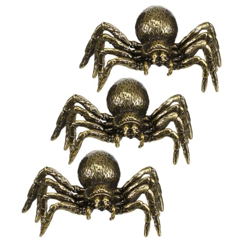 Kichvoe Lot de 3 Figurines Araignée en Laiton Vintage, Petite Statue Décorative en Métal pour Bureau, Salon et Chambre, Objet Décoratif Steampunk Original et Collectible, Décoration
