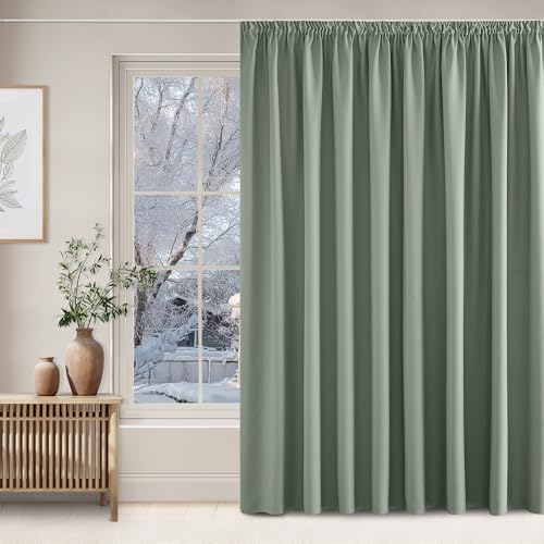 NICETOWN Rideaux Thermique de Fenêtre Draperies Galon Fronceur Lumineux Bloquer Anti UV pour Decoration Maison Chambre, 300cm Largeur sur 240 Hauteur, Sauge Vert, 1 Pièces