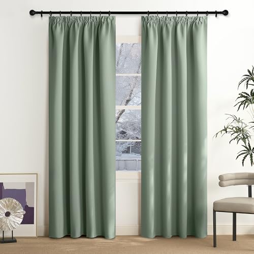 NICETOWN Rideaux Thermique de Fenêtre Draperies Galon Fronceur Lumineux Bloquer Anti UV pour Decoration Maison Chambre, 140 cm Largeur sur 200 Hauteur, Sauge Vert, 2 Pièces