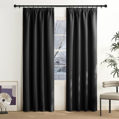 NICETOWN Décoration de Fenêtre - Rideau Occultant Thermique Noir Opaque Galon Fronceur Decoration pour Chambre Maison Salon, Largeur 140 sur Hauteur 200cm, 2 Pièces