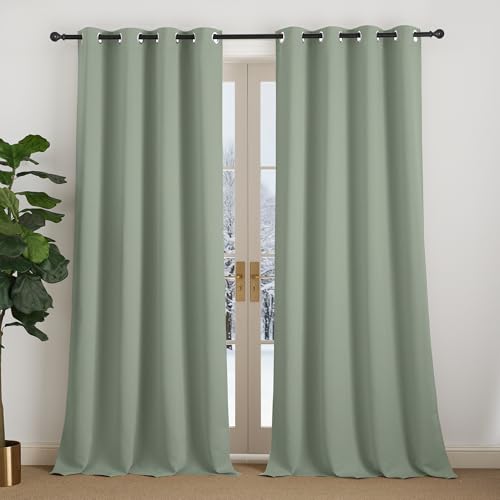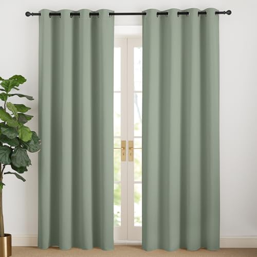 NICETOWN Rideaux Thermique de Fenêtre Draperies à Oeillets Lumineux Bloquer Anti UV pour Decoration Maison Chambre, 140 cm Largeur sur 200 Hauteur, Sauge Vert, 2 Pièces