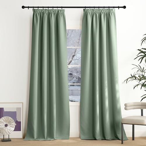 NICETOWN Rideaux Thermique de Fenêtre Draperies Galon Fronceur Lumineux Bloquer Anti UV pour Decoration Maison Chambre, 140cm Largeur sur 240 Hauteur, Sauge Vert, 2 Pièces