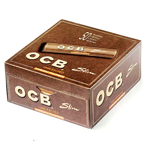 OCB UNBLEACHED SLIM Virgin Paper Lot de 50 feuilles de papier à rouler fin pour cigarettes King size