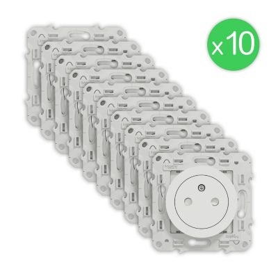 Prise 2 pôles + terre Schneider Electric Odace blanc à compléter 10 pièces