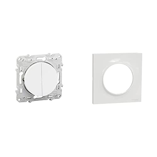 Schneider Electric Odace Double Interrupteur Va-et-vient Lumineux 10 A Blanc LED Orange 1,5 mA Plaque 1 Poste Styl à Vis