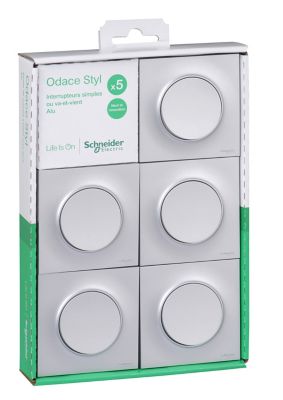 Interrupteur va-et-vient complet Schneider Electric Odace aluminium, lot de 5