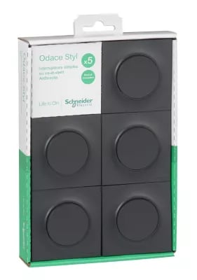 Lot de 5 interrupteurs va-et-vient complet Odace, SCHNEIDER ELECTRIC, anthracite