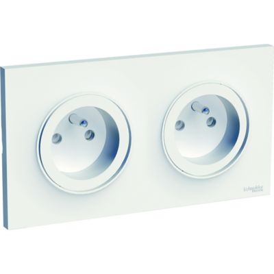 Prise de courant double avec terre complète Schneider Electric Odace blanc