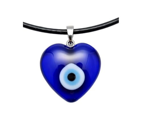 OUTLETISSIMO Collier avec pendentif coeur oeil grec bleu en verre - Amulette porte-bonheur anti-mauvais œil unisexe avec cordon réglable ET264