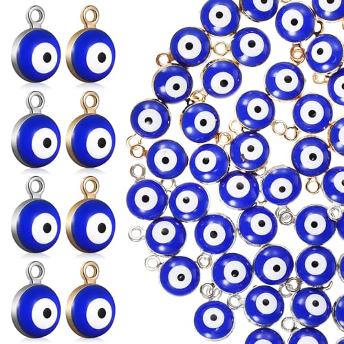 ULTECHNOVO Lot de 60 Pendentifs de Collier Œil Grec Bleu et Argenté pour Fabrication de Bijoux, Kit de Perles Mal Œil Mixte, Accessoires Créatifs pour Bracelets et Colliers Diy, Loisirs