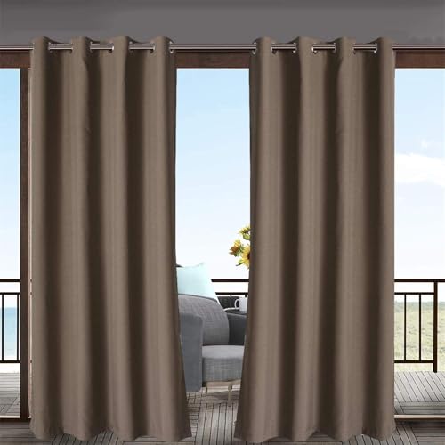 ele ELEOPTION Rideaux Imperméable d'extérieur, Rideau Résistant à la Décoloration Rideau Occultants avec Oeillet pour Porche Avant, Pergola, Cabanon, Gazebo (137 x 244cm, Café)