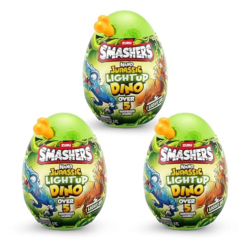 Smashers Nano Jurassic Light up Dino de ZURU (3 Pack, Assortiment aléatoire), Jouet œuf à thème Dinosaure à Collectionner avec Plus de 5 Surprises pour Les garçons et Les Enfants