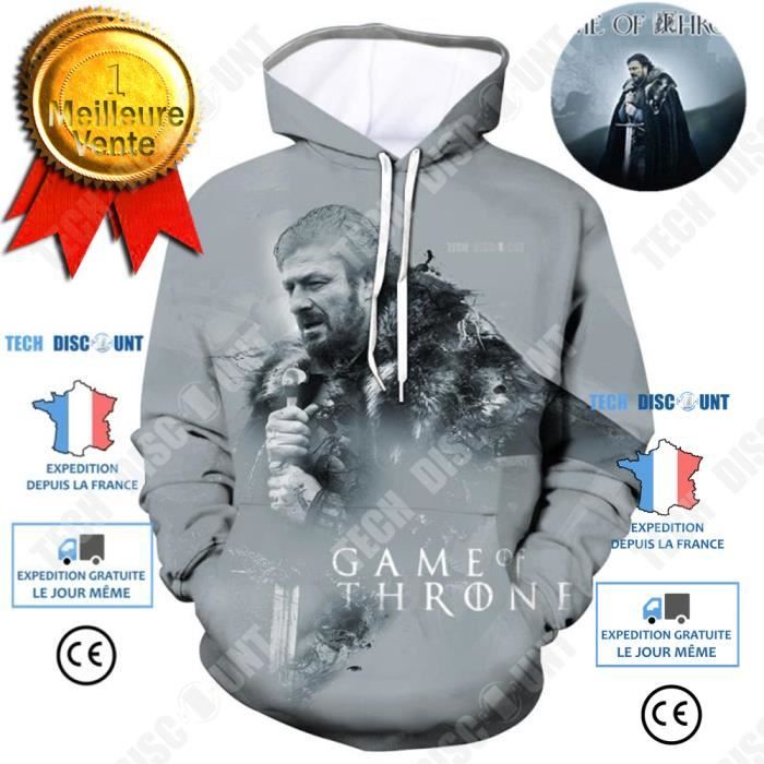 TD® pull games of thrones ned stark trone de fer gris hoodie sweat unisexe femme homme taille xxl pas cher design capuche sweatshirt