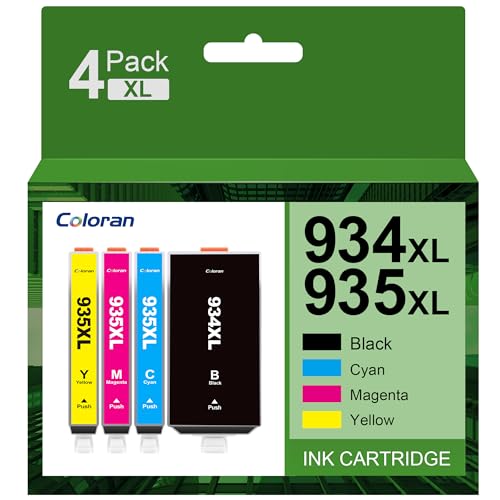Coloran 934XL 935XL Pack de 4 Cartouches d'encre Compatible pour HP 934 XL 935 XL pour HP Officejet Pro 6230 6830 Officejet 6820 (1 Noir 1 Cyan 1 Magenta 1 Jaune)
