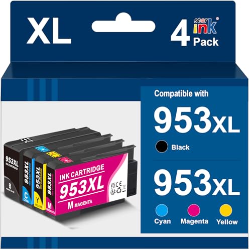 Starink 953XL Lot de 4 Cartouches d'encre Compatibles avec Cartouche HP 953 XL Pack Compatible avec HP Officejet Pro 7740 7720 8720 8710 8715 8718 8725 8210 8730 7730 8728 8719,Noir Cyan Magenta Jaune