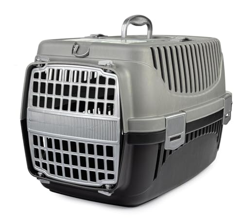 HAPPET Oggy M Transporteur 54 × 38 × 33 cm - Transporteur en Plastique Bleu pour Chat et Chien Moyen, Grille en Métal, Ventilation, Support, Attelage de ceinture, Léger Et Facile à Nettoyer