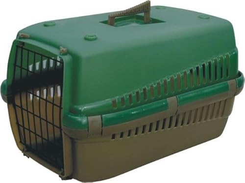 HAPPET Oggy M Transporteur 54 × 38 × 33 cm - Transporteur en Plastique Vert pour Chat et Chien Moyen, Grille en Métal, Ventilation, Support, Attelage de ceinture, Léger Et Facile à Nettoyer