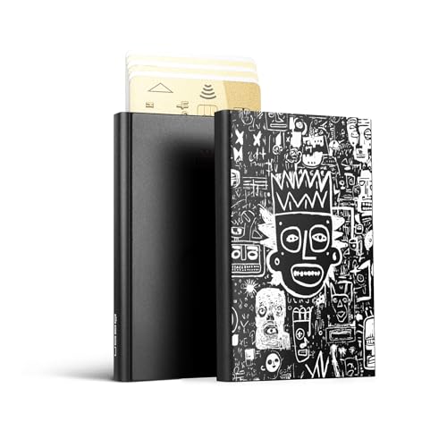 ÖGON -DESIGNS- Porte-Cartes Automatique en Aluminium, Protection RFID, Portefeuille Original, Fin et Minimaliste pour Homme et Femme, capacité 1 à 6 Cartes, modèle Slider (Gravure Pop Art)