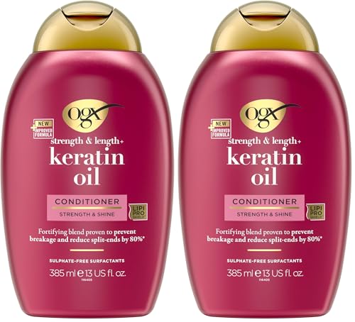 OGX Après-Shampoing à l'Huile de Keratine pour Réparer Les Pointes Fourchues, 385 ml (Lot de 2)