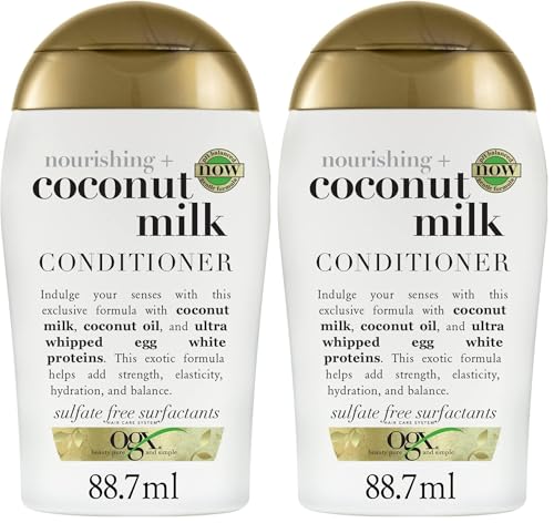 OGX | Après-Shampooing Nourishing + Coconut Milk (flacon format voyage de 89 ml) – Après-shampoing nourrissant pour tous types de cheveux – Soin cheveux hydratant au lait de coco (Lot de 2)