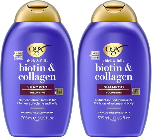 OGX Shampoing Sans Sulfate à la Biotine et au Collagène pour Épaissir les Cheveux, 385 ml(L'emballage peut varier) (Lot de 2)