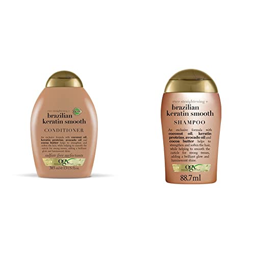 OGX Après-Shampoing à la Kératine pour des Cheveux Lisses, 385 ml & Ever Straightening Shampoing Lissant à la Kératine Brésilienne, 88.7 ml