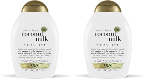 OGX - Shampoing Coconut Milk (385 ml) – Shampoing hydratant au lait de coco – Soin capillaire sans parabène et sans tensioactifs sulfatés (Lot de 2)