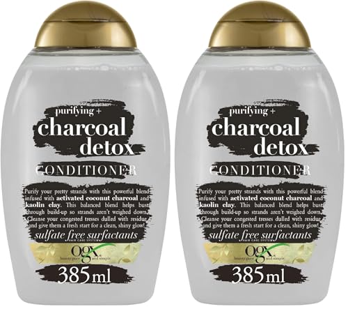 OGX Après-Shampoing au Charbon de Bois pour Cheveux Gras, Detox + Charcoal, 385 ml (Lot de 2)