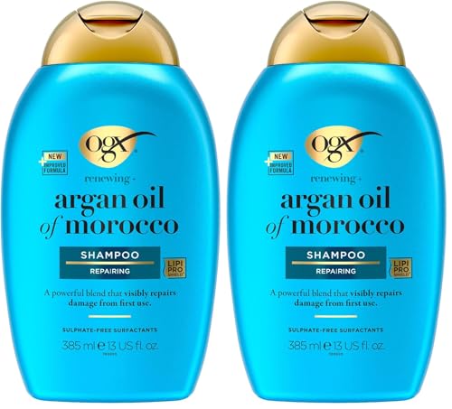 OGX | Shampooing Régénérant Huile d'Argan du Maroc (flacon de 385 ml) – Shampoing pour adoucir et faire briller les cheveux – Soin cheveux nourrissant et réparateur (Lot de 2)