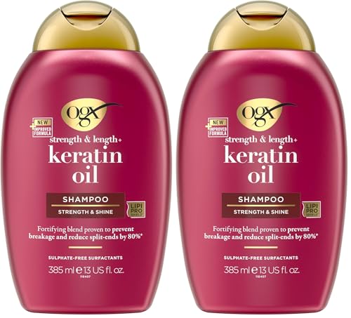 OGX - Shampooing Force & Longueur Huile de Kératine (flacon de 385 ml) – Shampoing anti-casse pour fortifier et renforcer les cheveux – Soin cheveux réparateur pour une chevelure éclatante de santé