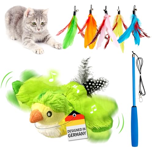 Jingmiger Jouet Chat Interactif, Jouet en Peluche pour Chat, Oiseau Volant pour Chat, Jouet Chat Oiseau Qui Bouge, Jouet Amusant pour Chat avec Chant D'oiseau pour La Maison, Chat