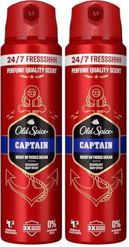 Old Spice Captain Déodorant en spray pour homme 150 ml Fraîcheur 24/7 à usage quotidien Parfum longue durée, protection contre les odeurs, sans sels d'aluminium, invisible sur le noir et blanc