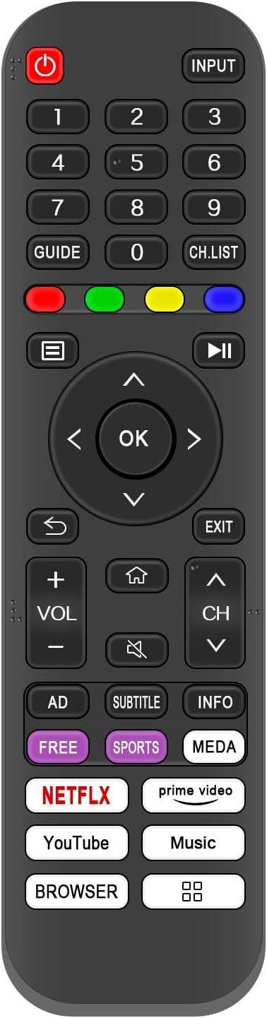 AULCMEET EN2J30H Télécommande de Remplacement Compatible avec Hisense 4K OLED Smart TV 50A7520FTUK / 50AE7400FTUK / 50AE7410FTUK / 55A7500F / 55A7520F / 55A7540F / 55A7560F / 55AE7400F / 55AE7410F