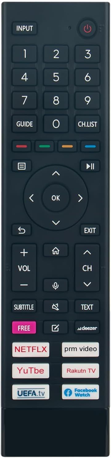 Télécommande de rechange universelle pour téléviseur Hisense Smart 4K UHD LED ERF3169H Hisense LCD LED OLED QLED avec commande vocale et bouton Netflix, YouTube et Google Play